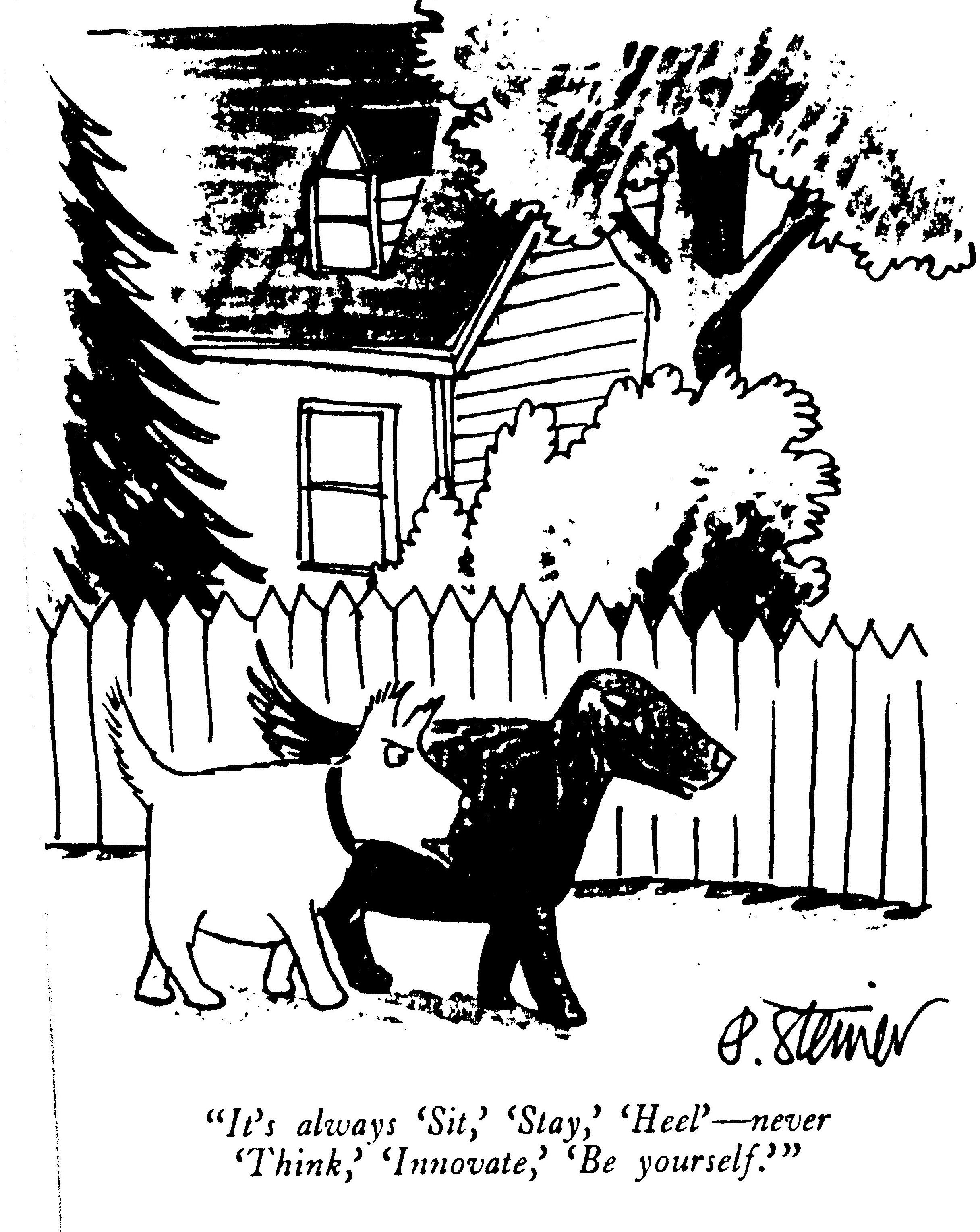 Amusing. If we substitute the words “Sit, Stay, Do what we say” in the cartoon, then how close are we to much current and traditional education?